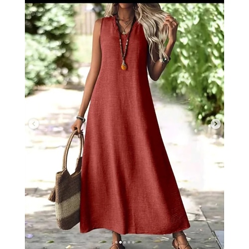 Per donna Normale Tuta Elegante Tinta unica Senza maniche Girocollo Tasche Vita alta Ufficio Attività commerciale Standard Vino Estate