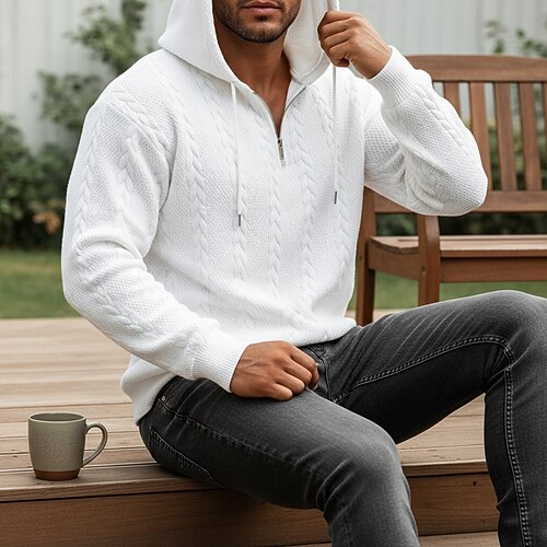 Per uomo Jacquard Felpa con cappuccio Felpa con cappuccio e zip corta Aalbicocca Nero Bianco Verde chiaro Vino Con Cappuccio Semplice Con zip Testurizzato Casuale Quotidiano Sport Outdoor