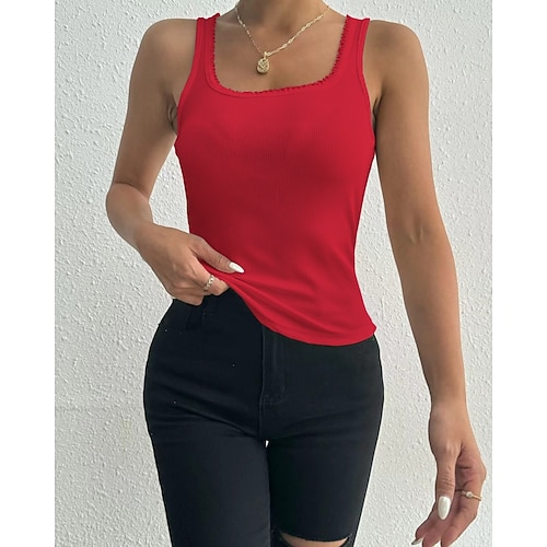 Per donna Maglietta Canotta Semplice Moda Classico Casual Senza Maniche Collo quadrato Top Regolari Quotidiano Uscire Weekend Nero Bianco Vino Rosso Verde Estate Primavera