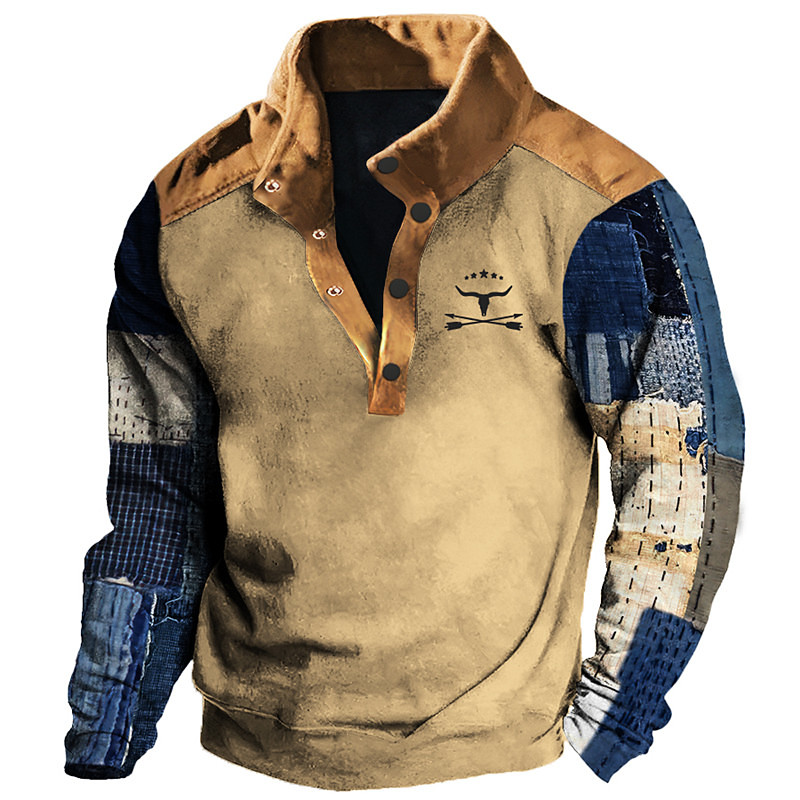 Men's Graphic Color Block Cowboy Sweatshirts Sweatshirt Long Sleeve Sweatshirt Stand Collar Daily Casual Vintage Retro 3D Print Vacation Sports Outdoor Holiday Print Spring Fall