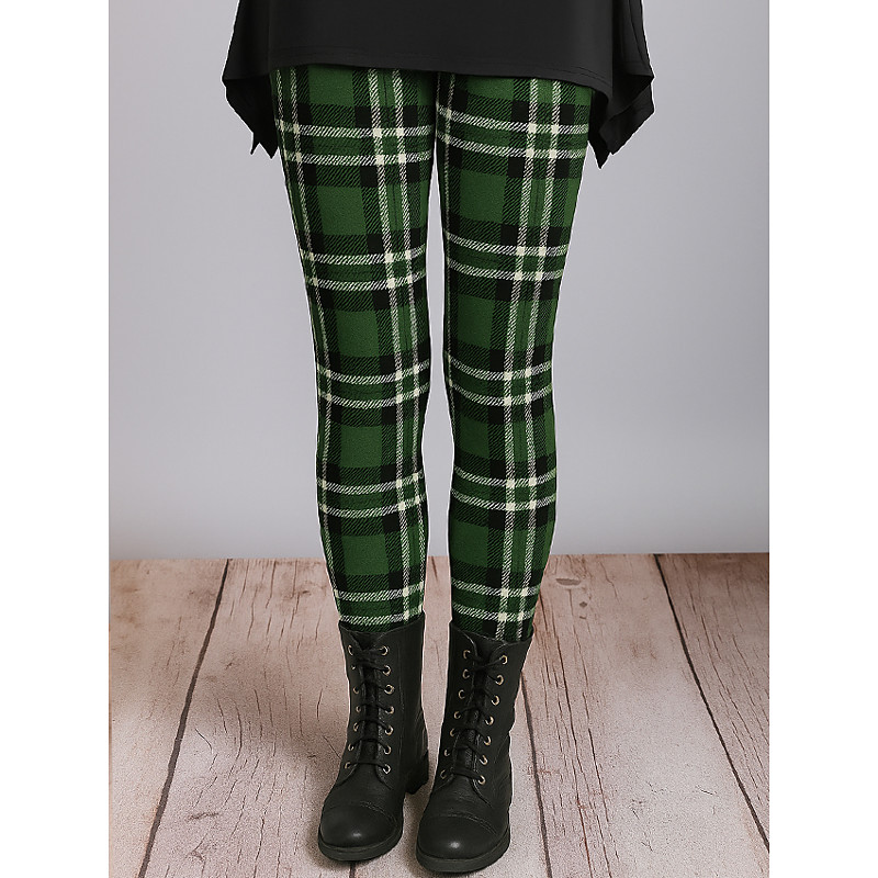 Women's Leggings Vacation Vintage Ethnic Style Ankle-Length High Waist Graphic Plaid Checkered 3D Print Quick Dry Breathability Soft Stretchy Outdoor Home Causal Pink Red Blue Green Fall Slim Fit