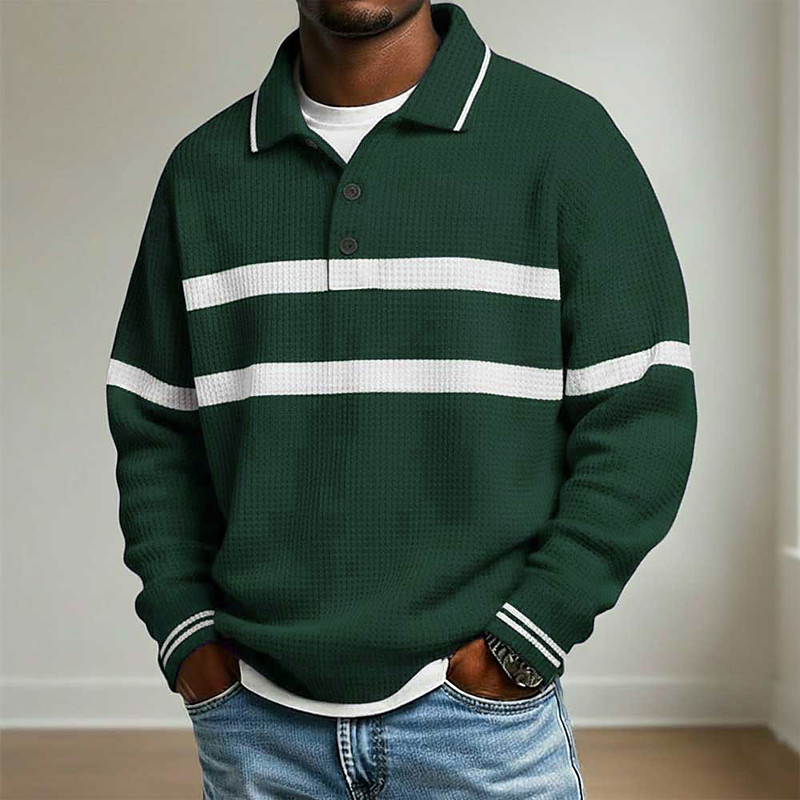 Men's Horizontal Stripes Waffle Polo Shirts Textured Long Sleeve Polo Shirts Lapel Casual School Athleisure Daily Wear 3D Print Fall Winter Blue Red Green