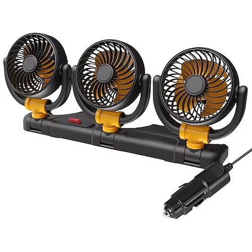 Ventilatore per auto a tre teste, ventilatore di raffreddamento per veicoli a 3 teste alimentato tramite USB da 12 V/24 V per cruscotto, potente e silenzioso circolatore d'aria per auto girevole a