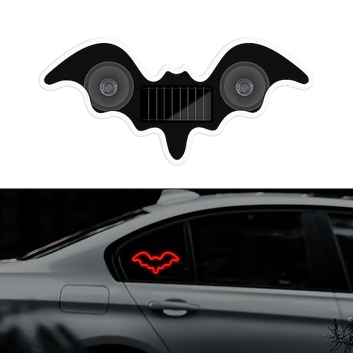 Luci diurne decorative a forma di pipistrello al neon con ventosa solare per auto, senza fili, ricaricabili tramite USB Type-C, 8 modalità, illuminazione ambientale a LED per interni auto. esterno,