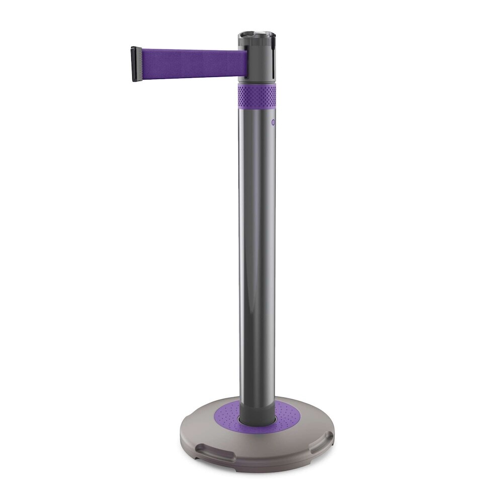 PROREGAL Gurtständer mit schwerem Standfuß für Innen-& Außenbereich | HxØ 90x8cm | Gurtlänge 300cm | UV-beständig, kratzfest | Anthrazit, Gurt Lila
