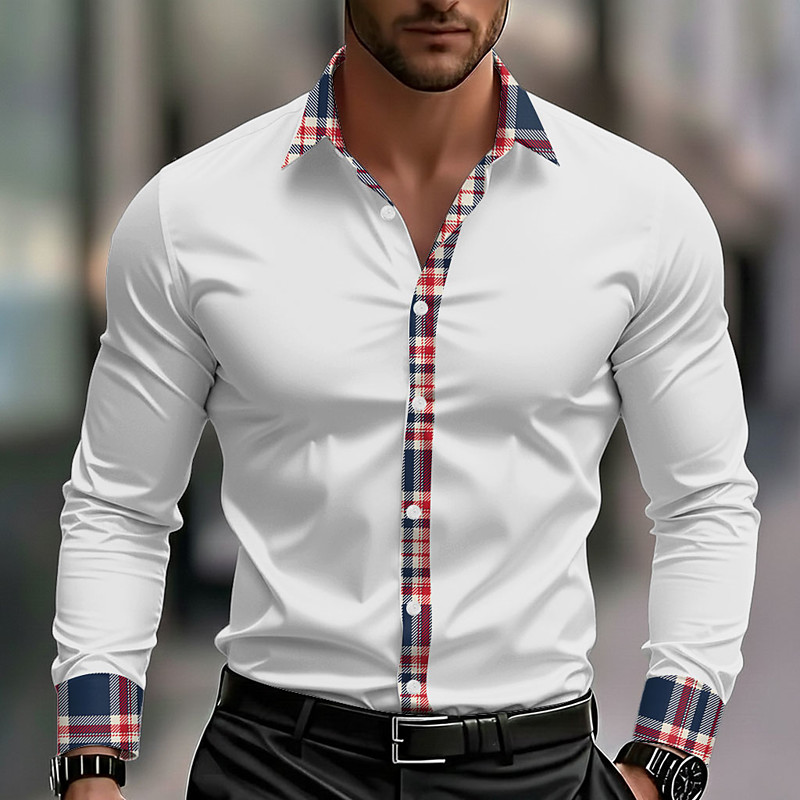 Men's Geometric Grid / Plaid Shirt Button Up Shirt Casual Dress Shirt Long Sleeve Fashion Casual Outdoor Dailywear Spring Fall Turndown 3D Print Collared Shirts Black White Wine Dark Blue Gray