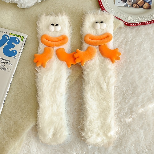 Einzigartige und lustige hässliche Socken, flauschige Monstersocken für Damen, weiche, plüschige Wintersocken mit Alien-Design, 3D-Augen und Lächeln, gemütliche, neuartige, pelzige Hausschuhsocken für