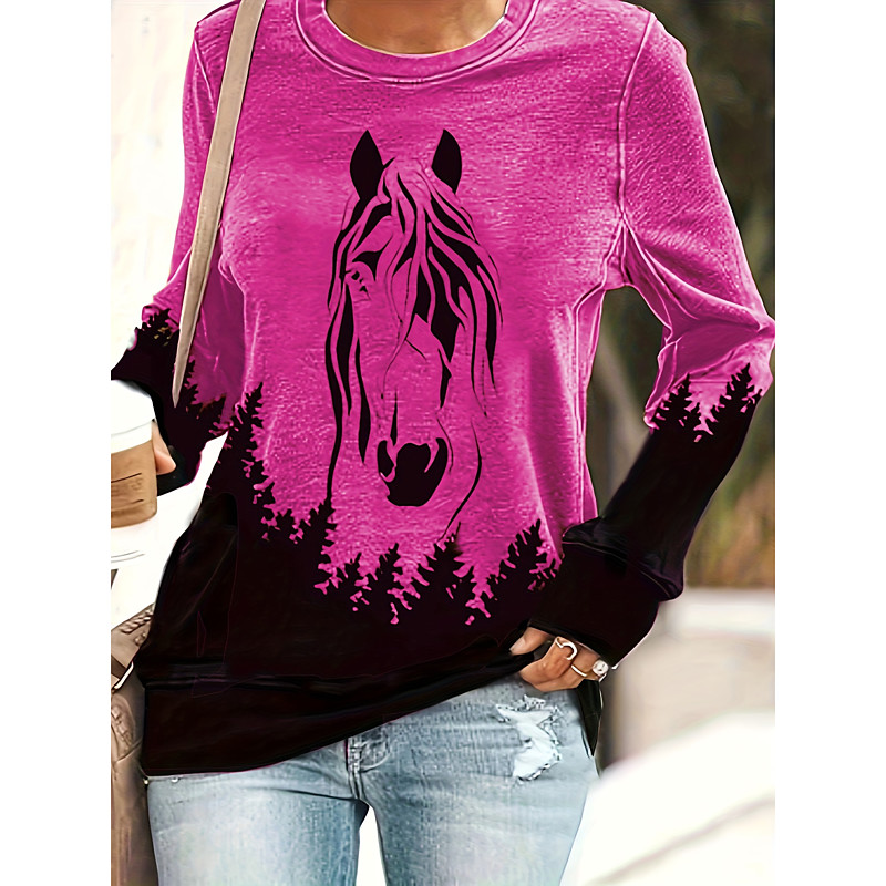 Women's Pullover Sweatshirt Graphic Animal Casual Long Sleeve Crew Neck Regular Tops Street Casual Holiday Print White Pink Blue Brown Green Spring Fall Winter