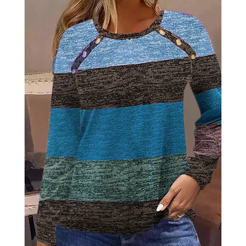 Women's T Shirt Tee Top Striped Casual Long Sleeve Crew Neck Regular Tops Daily Going out Weekend Patchwork Buttons Red Blue Orange Gray Spring Fall
