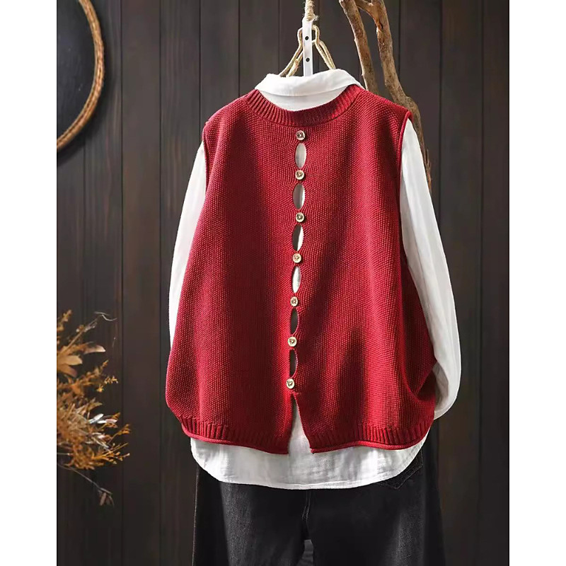 Women's Sweater Sweater Vest Streetwear Casual Solid Color Crew Neck Buttons Knitted Sleeveless Regular Tops Knit Daily Holiday Going out Black Red Spring Fall