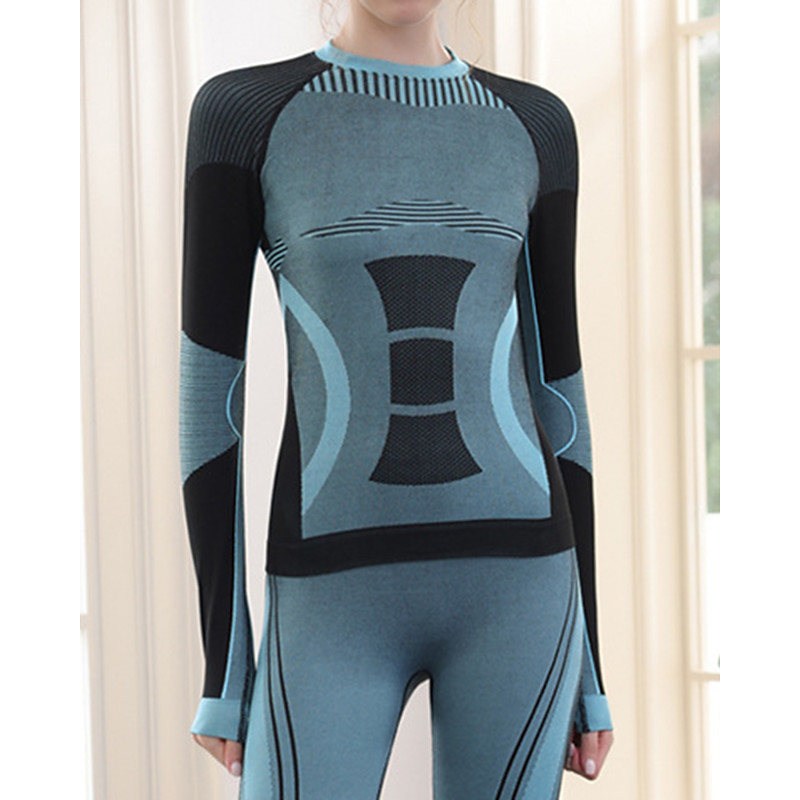 Women's Baselayer Thermal Shirts Long Sleeve Crew Neck Top Outdoor Thermal Warm Winter Autumn / Fall Chinlon Patchwork Black Pink Blue Ski / Snowboard Tennis Winter Sports