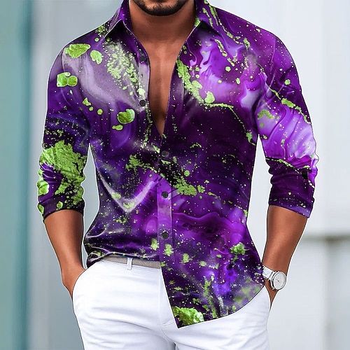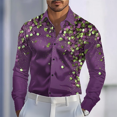 Martedì grasso Per uomo Arte astratta Carnevale Camicia Camicia in raso Camicia elegante Manica Lunga Moda Casual Feste Ferie Estate Primavera Collo ripiegato Stampa 3D Camicie con bottoni Viola