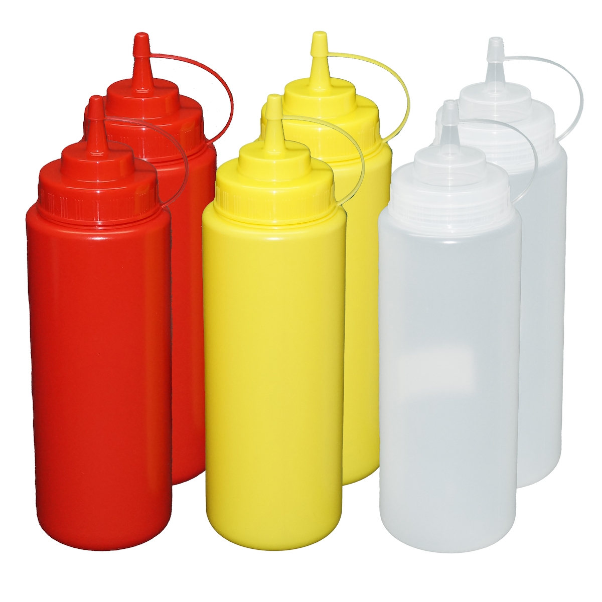 GVK ECO Je 2 Stück rot, gelb,transparente Quetschflaschen 1 Liter Dosierflasche Spenderflasche Dressingflasche