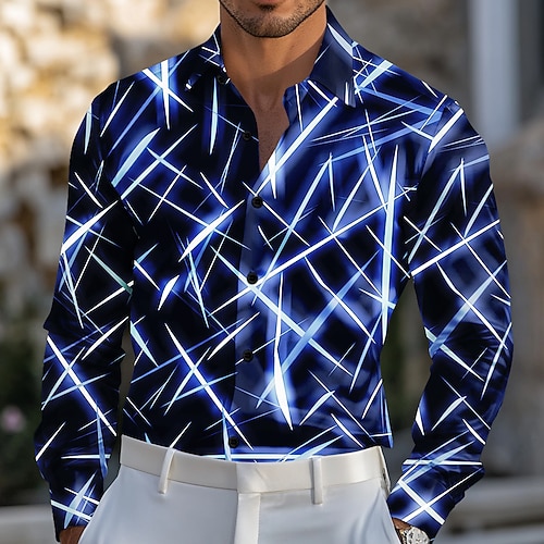 Per uomo Geometrico Colore sfumato Linea laser Camicia Camicia in raso Camicia elegante Manica Lunga Moda Casual Vacanza Abbigliamento Quotidiano Estate Primavera Autunno Collo ripiegato Stampa 3D