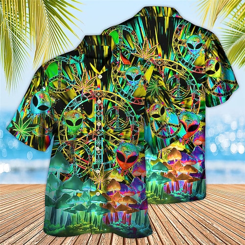 Per uomo Colorato Fungo Alieno Camicia Camicia hawaiana estiva Camicia Aloha Manica Corta Camicia Collo ripiegato Tropicale Moda Hawaiano Casuale Spiaggia Camicia hawaiana Blu Rosso Viola S M L