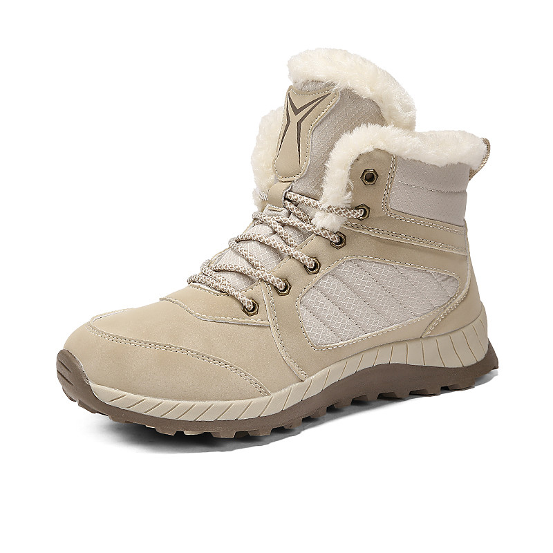 Men's Beige Waterproof Snow Boots with Fur Lining - Warm and Functional Footwear for Winter Weather, Hiking and Cold Conditions