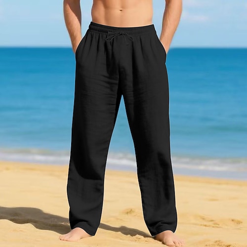 Per uomo Pantaloni di Lino Pantaloni Pantaloni Estivi Pantaloni da Spiaggia Coulisse Elastico in vita Gamba Dritta Semplice Comodità Traspirante Lunghezza intera Casuale Quotidiano Ferie Vacanza Moda