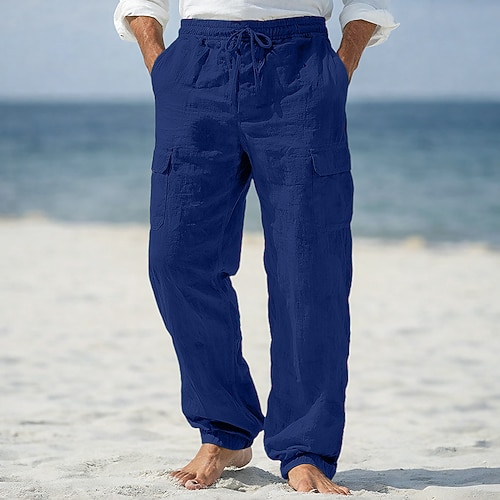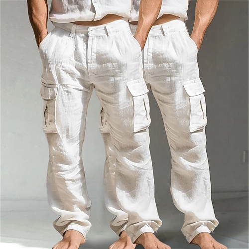 Per uomo Pantaloni Cargo Pantaloni di Lino Pantaloni Estivi Pantaloni casual Multi-tasche Gamba Dritta Confezione multipla Semplice Comodità Traspirante Lunghezza intera All'aperto Quotidiano Uscire