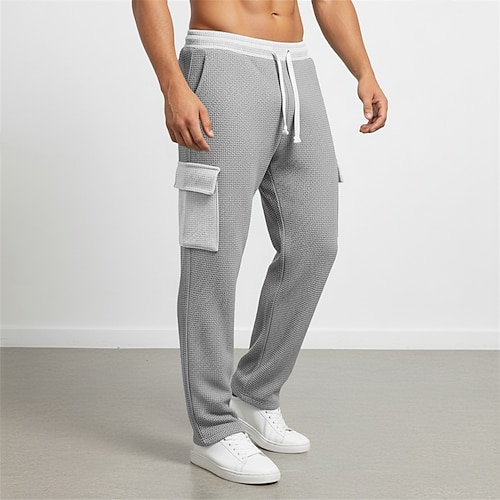 Per uomo Nido d'ape Pantaloni Pantaloni casual Pantaloni della tuta a gamba dritta Pantaloni testurizzati Coulisse Multi-tasche Blocco di colori Comodità Lunghezza intera Quotidiano All'aperto