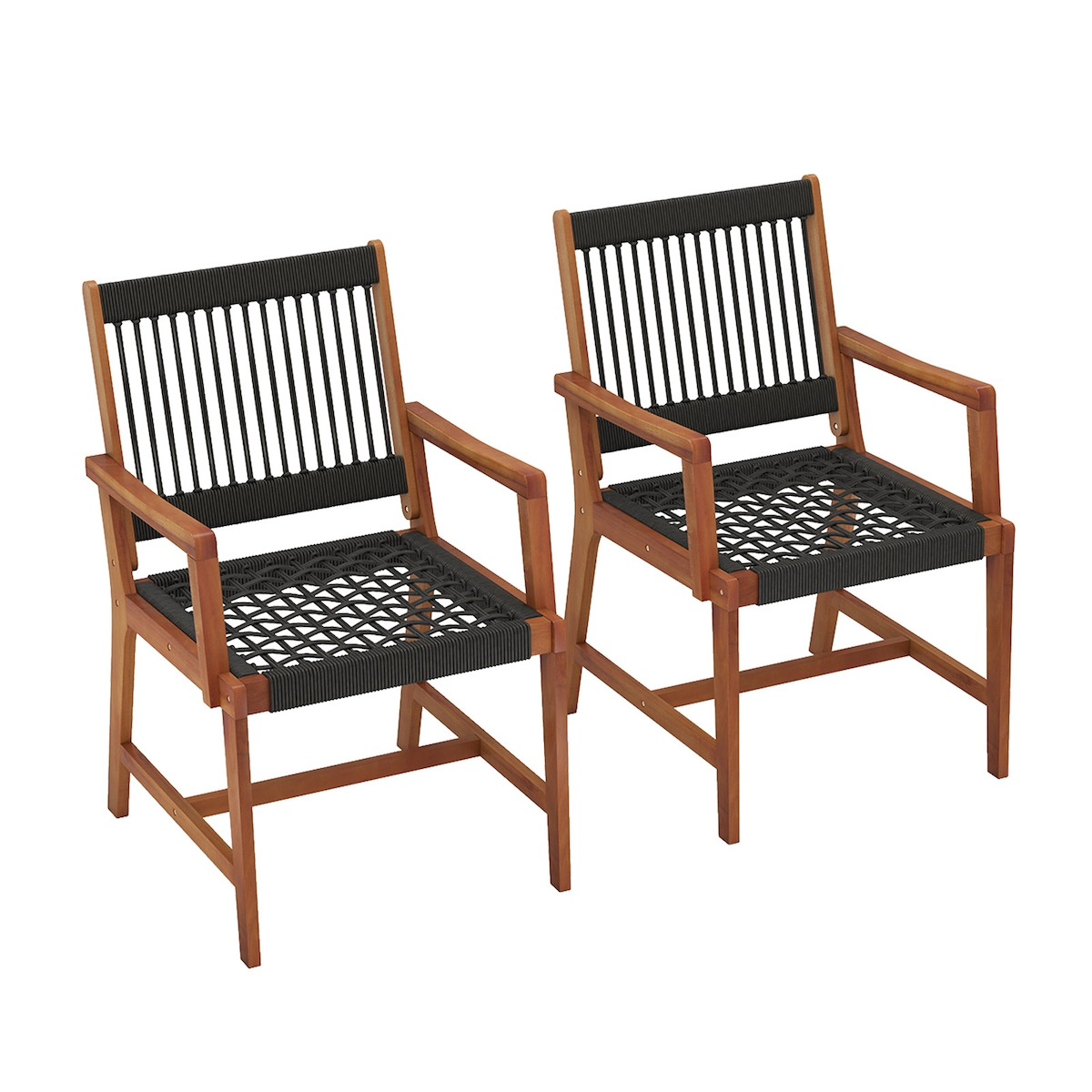 COSTWAY Gartenstuhl-Set, 2 Stück, Akazienholz und Seilgeflecht, 64 x 57 x 90 cm, schwarz und naturfarben