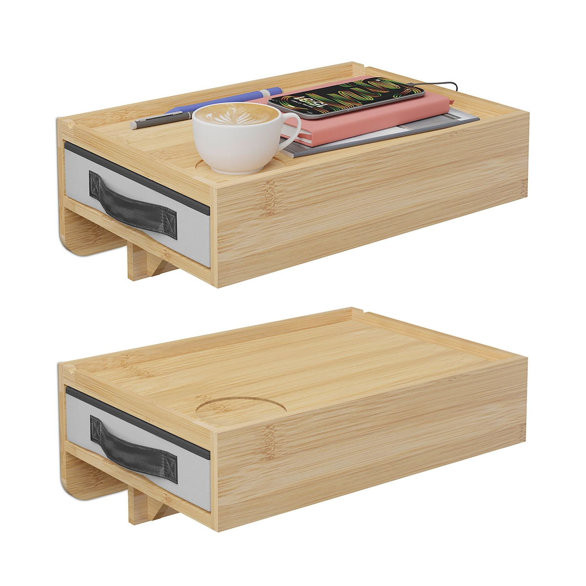 Relaxdays Nachttisch klemmbar, 2er Set, Bambus, HxBxT: 14 x 37 x 26,5 cm, Schublade, Bettablage zum Einhängen, natur