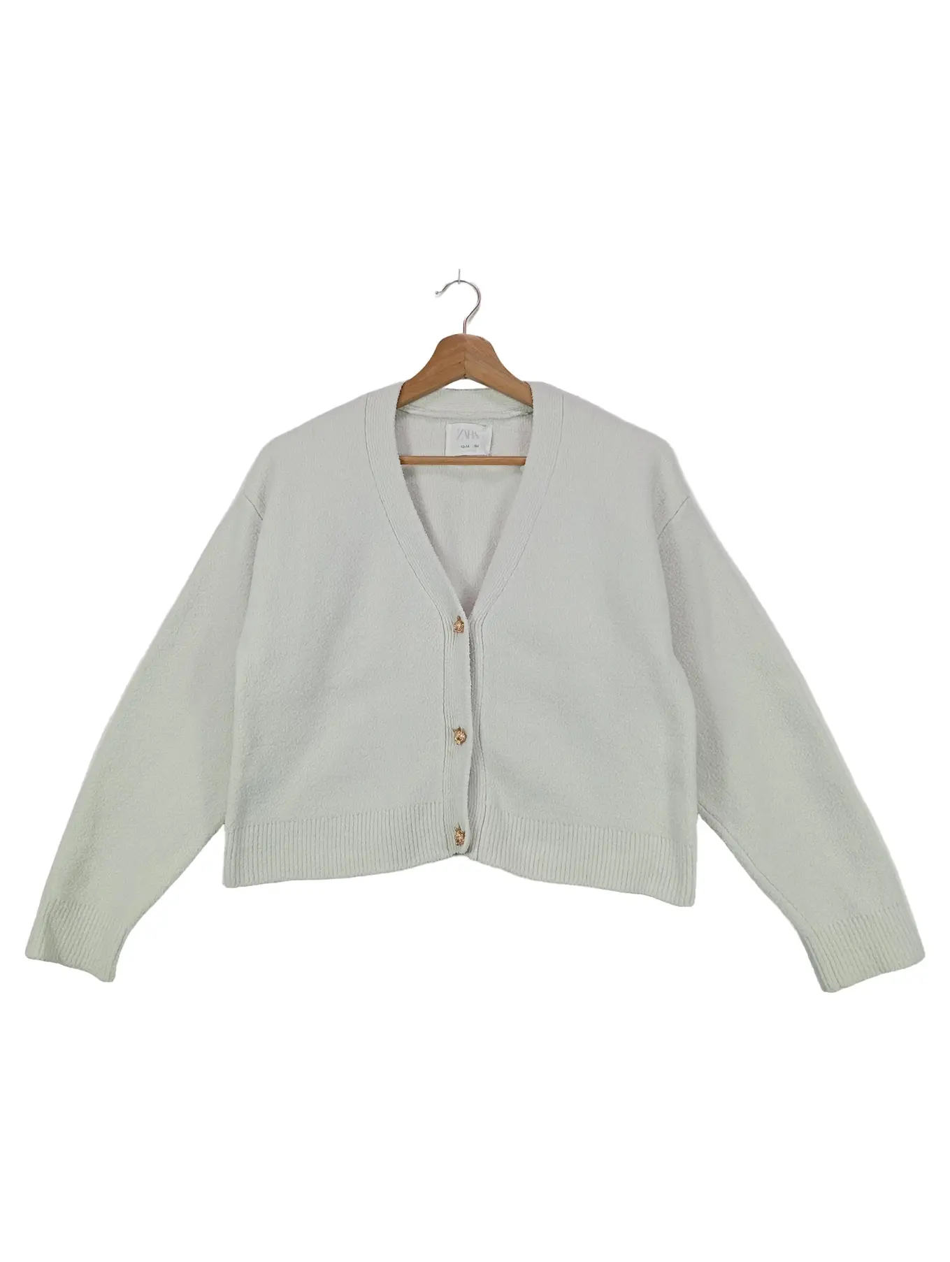 ZARA Strickjacke Kinder Damen XL Weiß Knopfleiste
