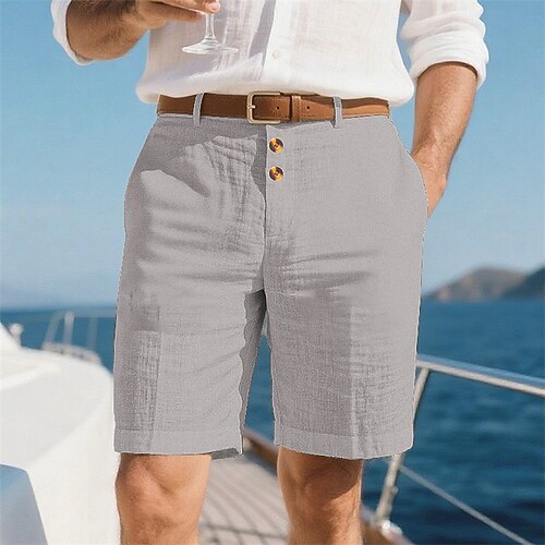 Per uomo Shorts Shorts di Lino Pantaloncini Estivi Shorts da Spiaggia Tasca Semplice Comodità Traspirante Lunghezza al ginocchio Vacanza Ferie Spiaggia Hawaiano Boho Nero Bianco