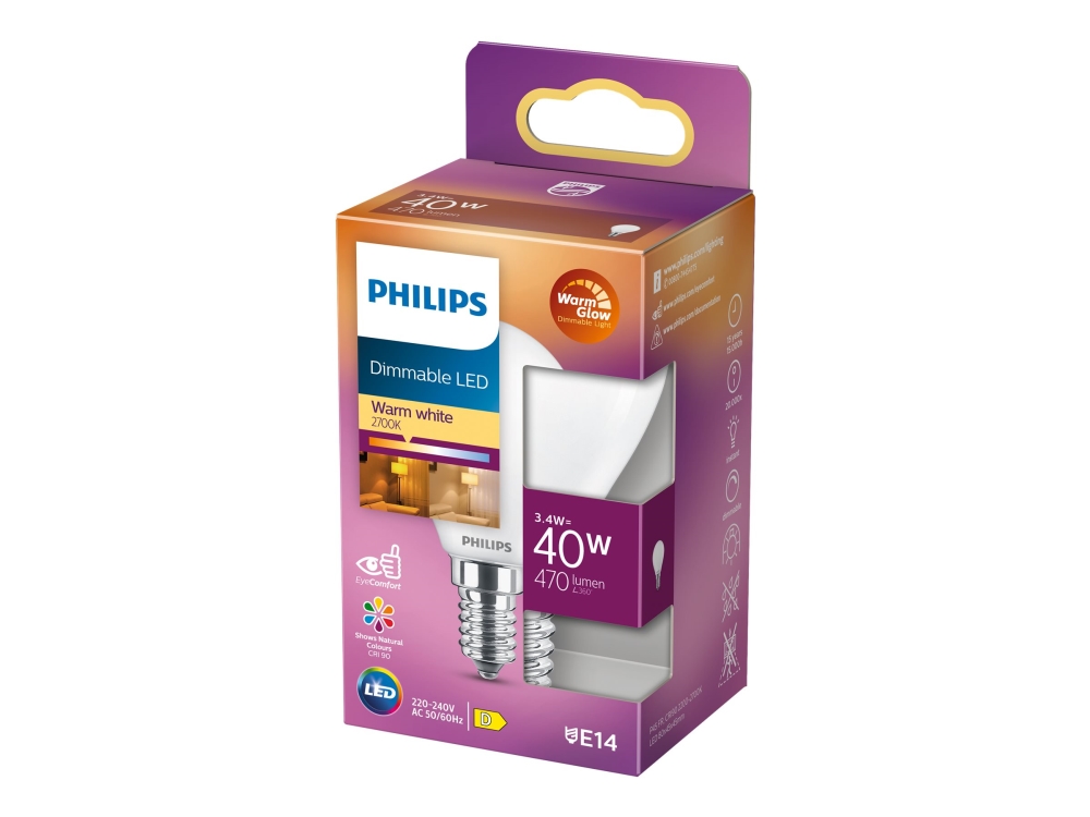 Philips SceneSwitch - LED-lyspære - form: pære - E14 - 5 W (tilsvarende 40 W) - klasse F - varm hvid/flammelys - 2200/2500/2700 K