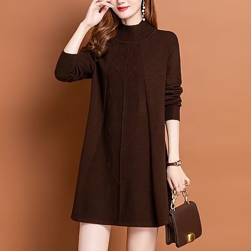 Per donna Mini Abito Abito in maglia Vacanza Casual Boho Quotidiano Ferie Uscire Taglia piccola Grafico Manica Lunga Girocollo Nero Viola Arancione Verde Autunno Inverno
