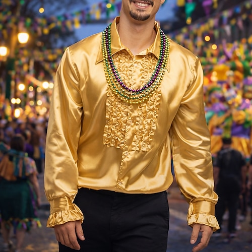 Retrò Vintage Anni '70 Rave Camicia Disco Volant Costume Per uomo Halloween Carnevale Festival Musicale Parata dell'Orgoglio Mese dell'orgoglio Adulti Camicia Tutte le stagioni