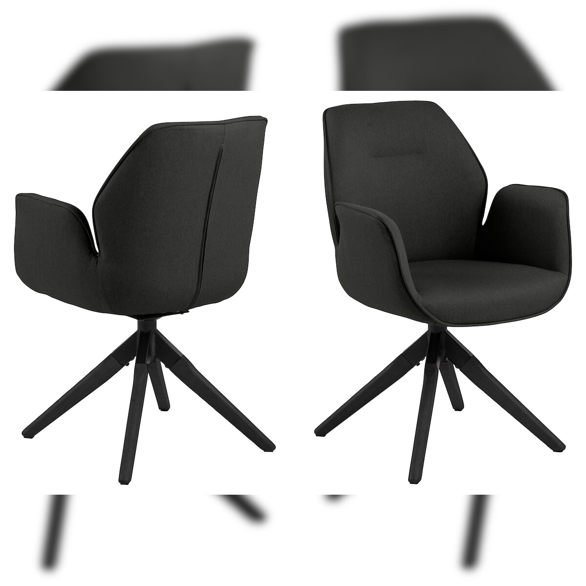 Aura Esszimmerstuhl schwarze Beine mit Armlehnen und Rücklauf dunkelgrau.