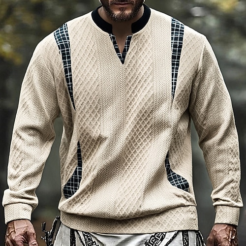 Per uomo Maglia Aalbicocca Nero Bianco Vino Verde militare Colletto Mao Blocco di colori Patchwork Sport Outdoor Quotidiano Ferie Poliestere Velluto a coste Streetwear Essenziale Casual Primavera