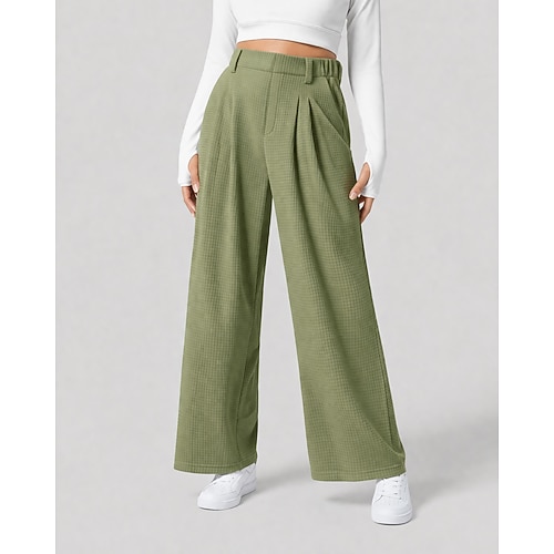 Per donna Nido d'ape Gamba larga Chinos Vacanza Lunghezza intera Vita Alta Comodità Micro-elastico Quotidiano Blu Verde translucido Aalbicocca Nero Primavera Vestibilità comoda