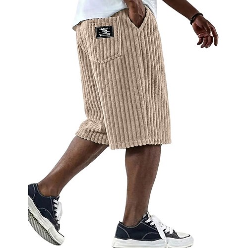 Per uomo Shorts Pantaloncini casual Pantaloncini di velluto a coste Tasca Elastico in vita Semplice Traspirante Lunghezza al ginocchio Casuale All'aperto Vacanza Vacanza Moda Nero Bianco