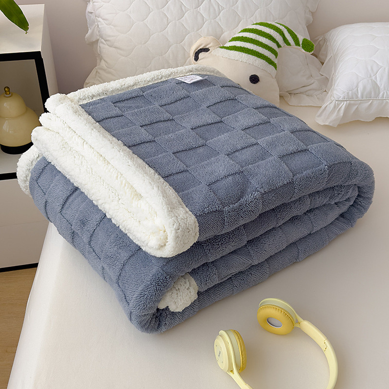 Solid Color Thickened Warm Double Layer Lamb Cashmere Jacquard Blanket Office Nap Blanket Sofa Warmer Super Soft Blankets