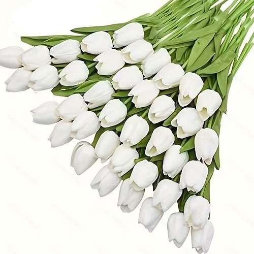 Bouquet di tulipani artificiali realistici da 22 pezzi - tulipani finti rosa e bianchi con steli verdi, fiori in resina/plastica per decorazioni per matrimoni, casa e ufficio - centrotavola realistico