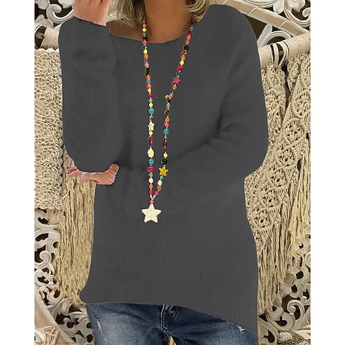 Per donna Felpa Maglione Streetwear Casual Colore Puro A Coste Girocollo Lavorato a maglia Manica Lunga Top Regolari Maglia All'aperto Quotidiano Weekend Rosa intenso Rosa Autunno Inverno