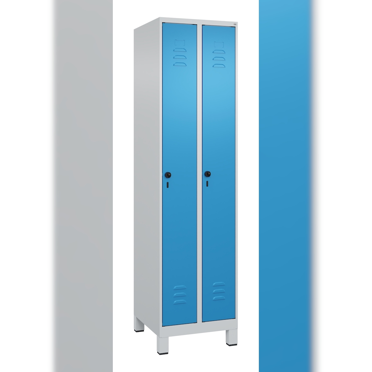 C+P Spind Classic PLUS, Füßen, 2 Abteile, HxBxT 195x50x50cm, Sicherheitsdrehriegel, Hellgrau/Lichtblau von PROREGAL