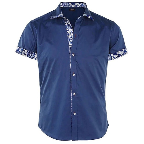 Per uomo Camicia Camicia Estiva Camicia con Bottoni Nero Bianco Blu marino Azzurro Manica Corta Floreale Blocco di colori Collo ripiegato Streetwear Casuale Bottonato Abbigliamento Poliestere Sport