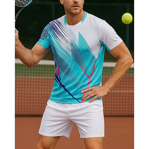 Per uomo Grafico Geometrico Set sportivo Camicie e pantaloncini Set da tennis 2 Maniche Corte Traspirante Tennis Golf Pickleball Blu Verde Abbigliamento da tennis