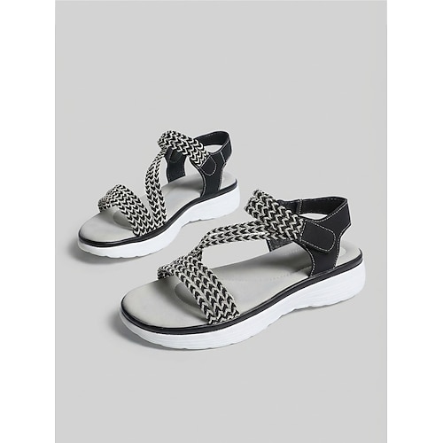 Sandali comodi da donna neri con cinturino intrecciato e gancio regolabile Sandali sportivi con passanti, scarpe casual leggere con suola ammortizzata per camminare in estate e viaggiare
