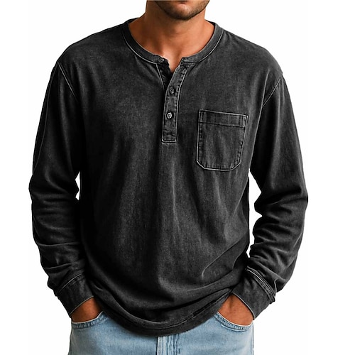 Herren Henley Hemd Hemd aus 100 % Baumwolle in Säurewaschung T-Shirt Langarm Einfach Vintage Retro Vintage Lässig Vintage-Stil Gewaschen Henley Lässig Frühling Herbst Ganzjahres Schwarz Rosa Grau