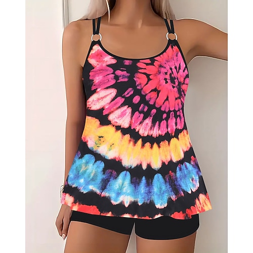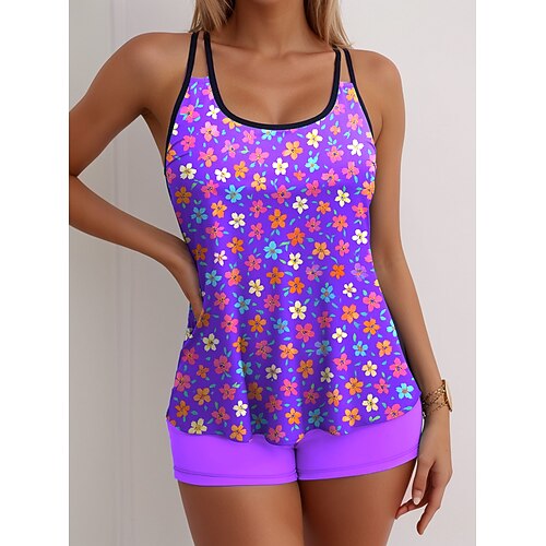 Per donna Costumi da bagno Tankini Gonna Costume da bagno Coulisse Elegante Vacanza Floreale Grafico Collo a U Senza Maniche Costumi da bagno