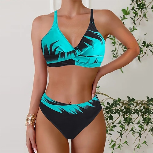 Per donna Costumi da bagno Due pezzi Vita alta Costume da bagno Senza schiena Vacanza Abbigliamento da Spiaggia Floreale Grafico Scollo a V Senza Maniche Costumi da bagno