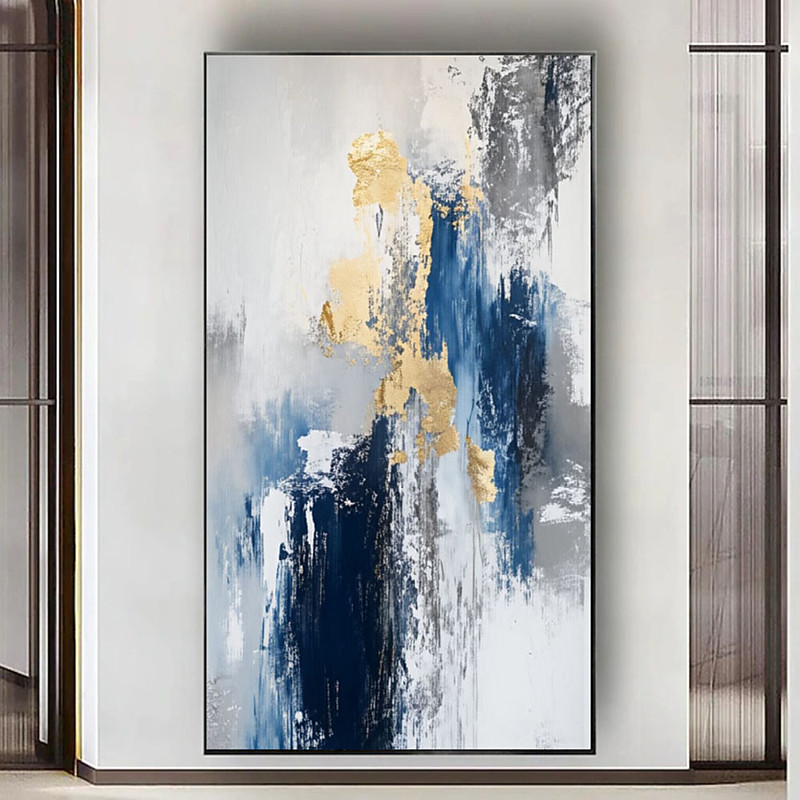 oil painting handmade Gold Leaf Plated Navy Blue 100% Hand Painted Textured Painting Acrylic Abstract Oil Painting Wall Decor Living Room Office Wall Art