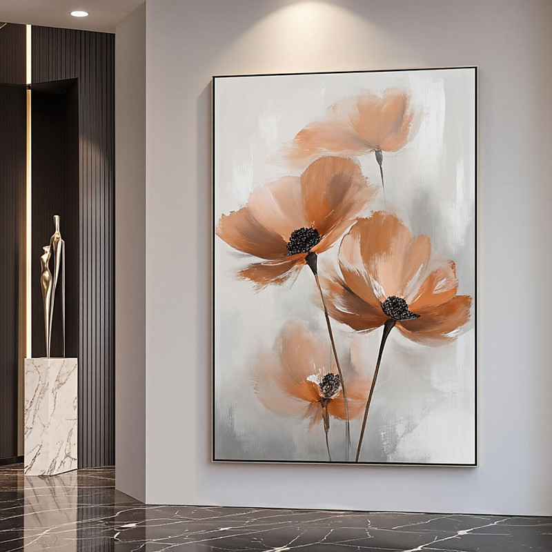 Handmade Abstract Design Large Floral Wall Art Beige Vibrant Poppies Subtle Blooms Floral Wall art Decor Beige Traditional Canvas Wall Art