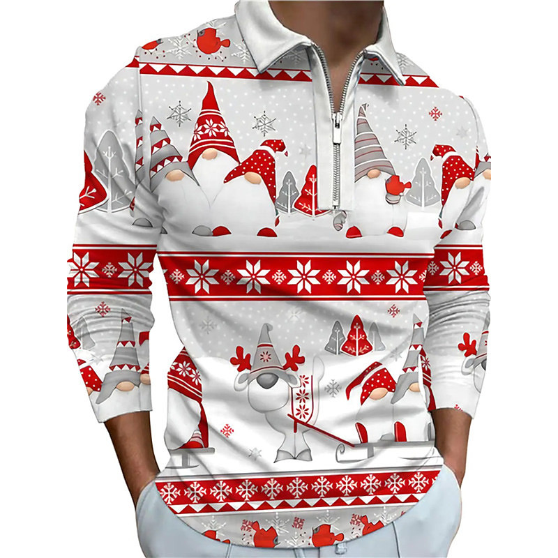 Christmas Men's Santa Claus 3D Zipper Polo Golf Santa Claus Turndown Light Green Red Green Gray 3D Print Street Casual Long Sleeve Zipper Print Clothing Apparel Fashion Designer Casual Breathable