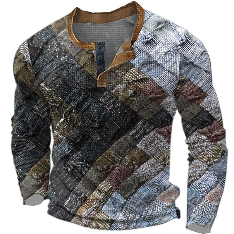 Men's Graphic Patchwork Henley Shirt Waffle T Shirt Long Sleeve 3D Print Fashion Designer Casual Sports Outdoor Holiday Festival Spring Fall Blue Brown Green Gray Henley Henley T-Shirt