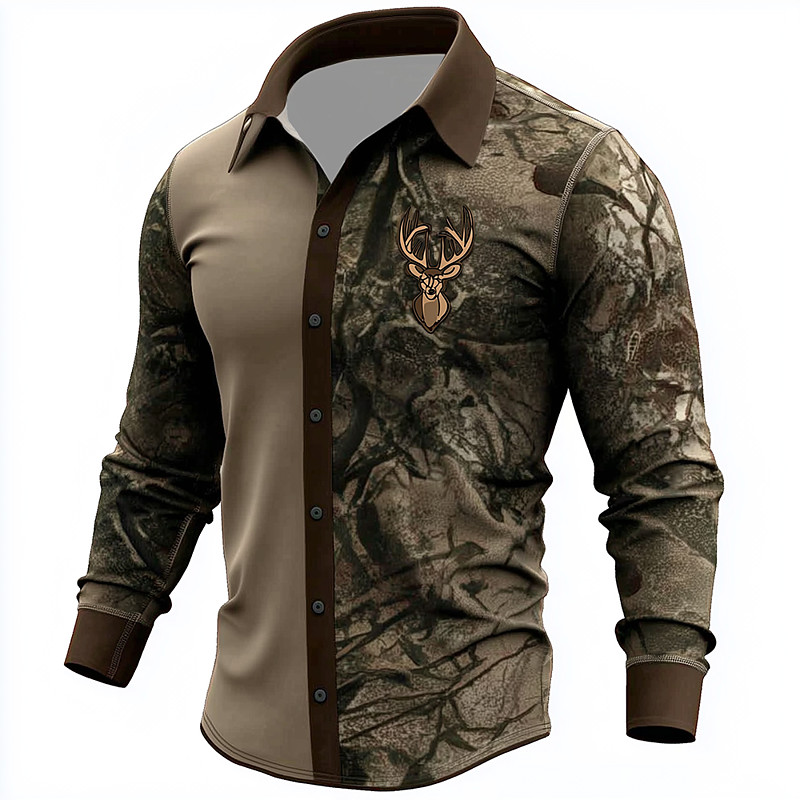 Men's Camo Reindeer Camouflage Shirt Button Up Shirt Long Sleeve Vintage Retro Outdoor Camping Hiking Hunting Spring Fall Turndown 3D Print Collared Shirts Camouflage khaki Army Green Khaki