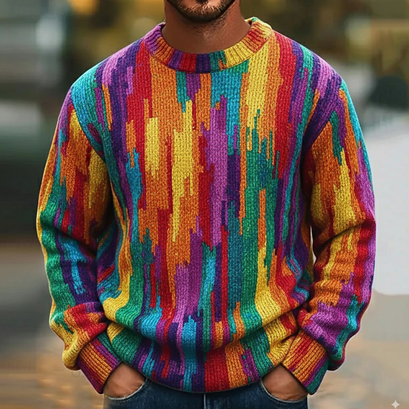 Men's Color Block Abstract Pullover Sweater Jumper Knitwear Crewneck Casual Vacation Street Daily 3D Print Knitting Keep Warm Long Sleeve Spring Fall Winter Blue Green Multi Color